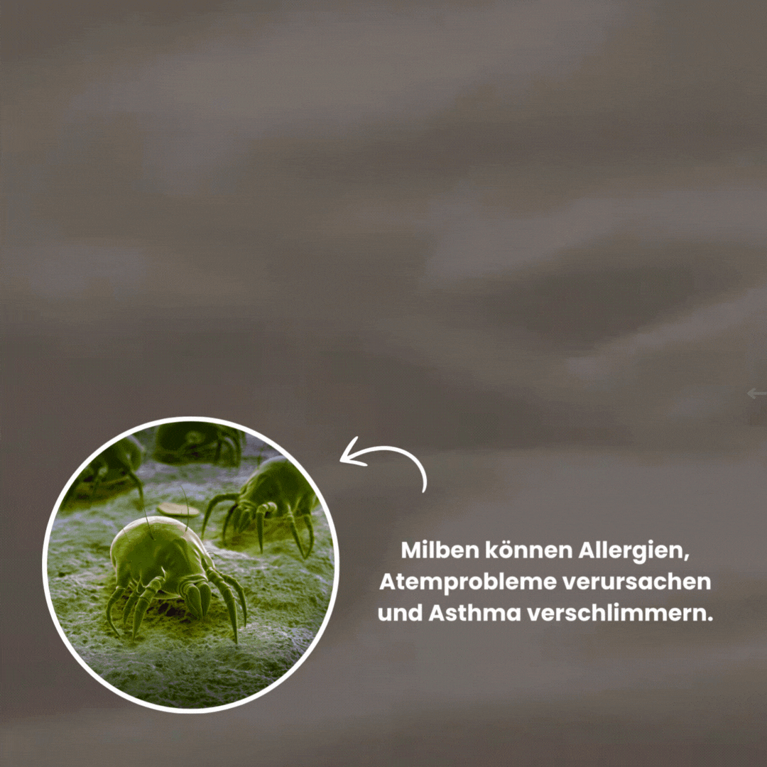 Mit CleanMax Pro™ kannst du dein Zuhause frei von Milben und Allergenen halten und die Luftqualität sowie das Wohlbefinden deiner Familie verbessern.